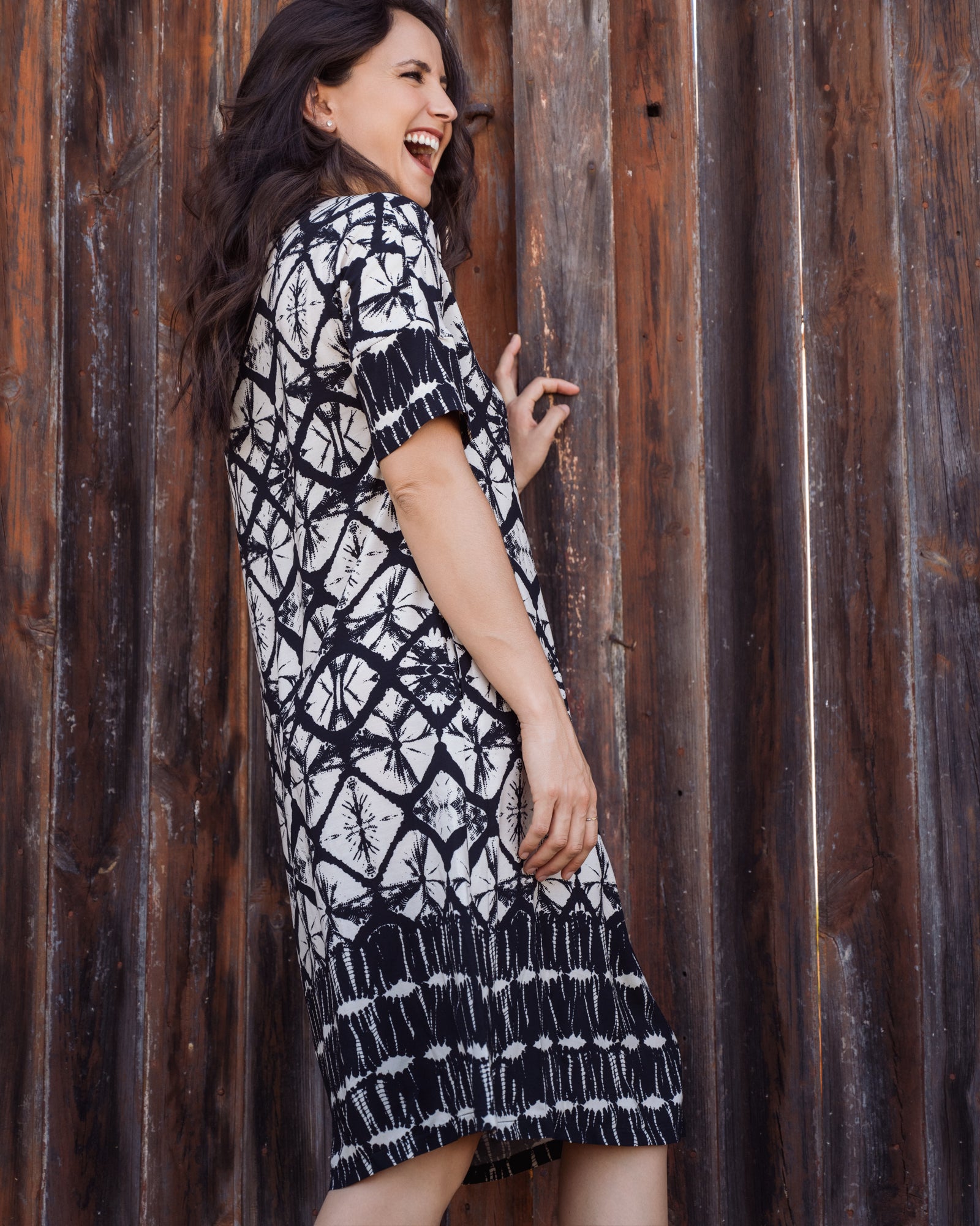 Introducing The Luna – a sophisticated addition to your wardrobe. With its intricate monochrome geometric print. The relaxed fit and mid-length hem make it perfect for any occasion, whether you're wandering through the city streets or dancing under the stars. The Luna is crafted from soft, breathable fabric, ensuring you feel as good as you look. Slip into this effortlessly chic piece and let your unique style shine.